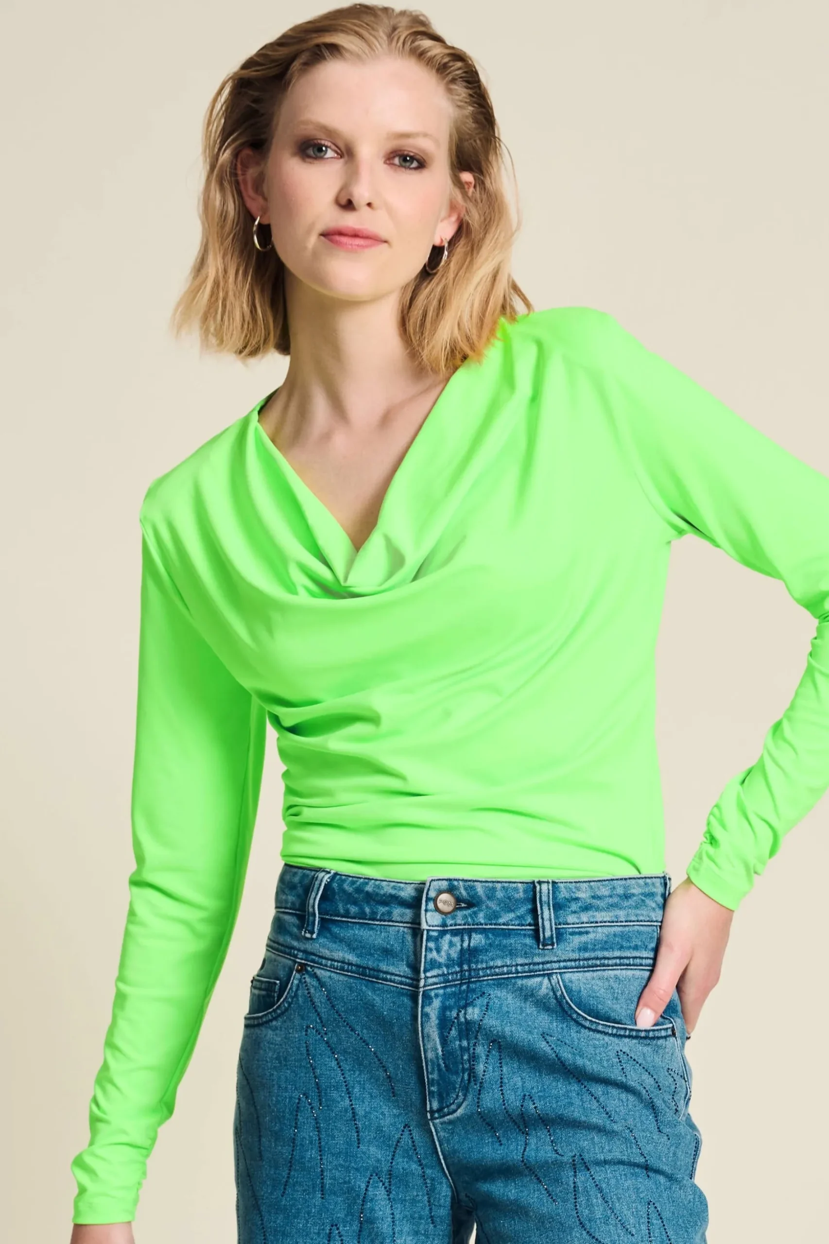 Pasvorm: De top valt aansluitend heeft lange mouwen. Het model op de foto is 177 cm lang en draagt maat 36.