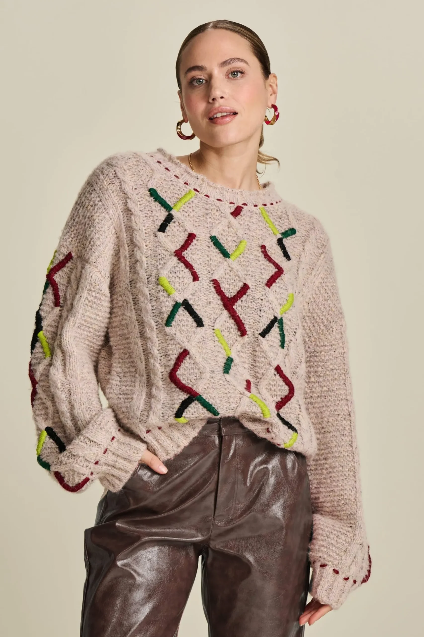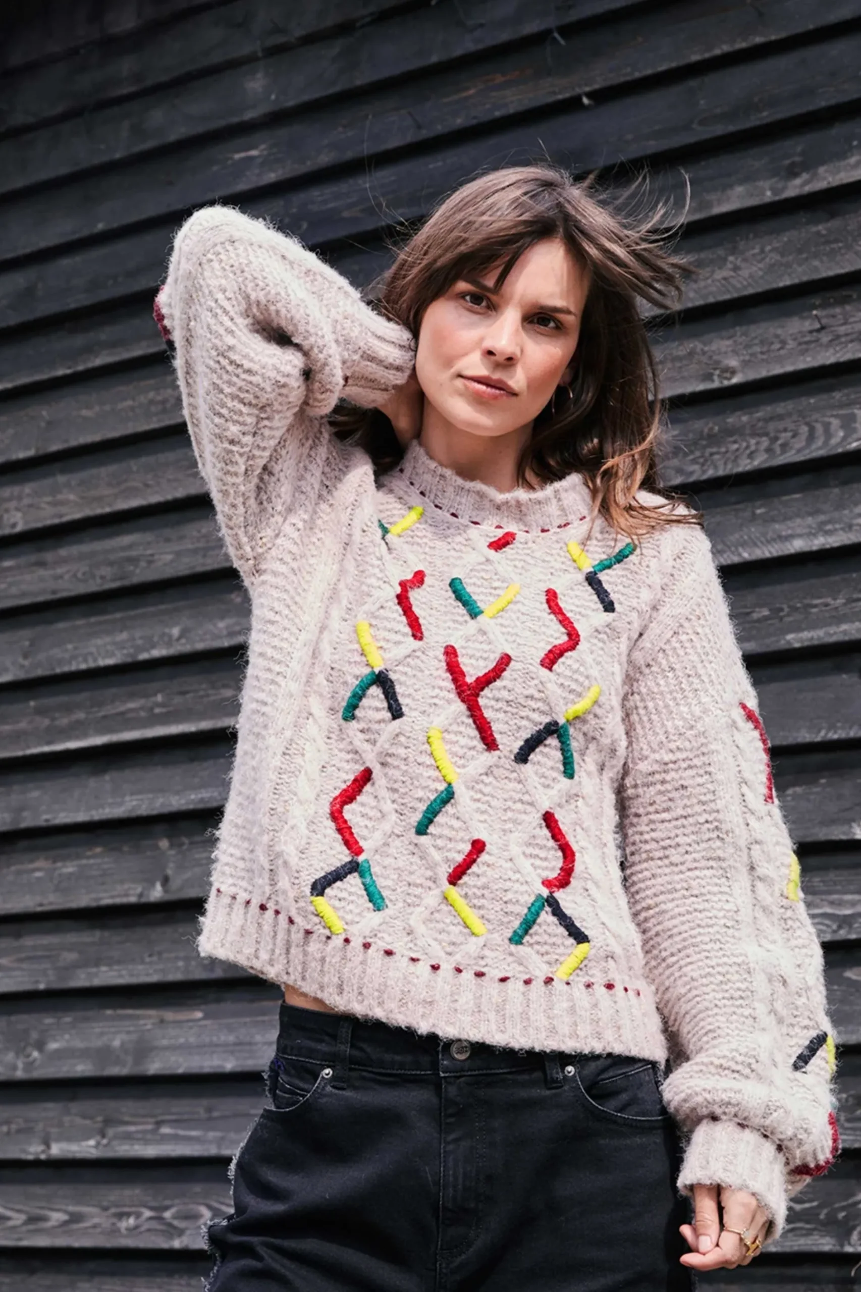 Pasvorm: De trui heeft een wijde fit en lange mouwen. Het model op de foto is 170 cm lang en draagt maat 36.