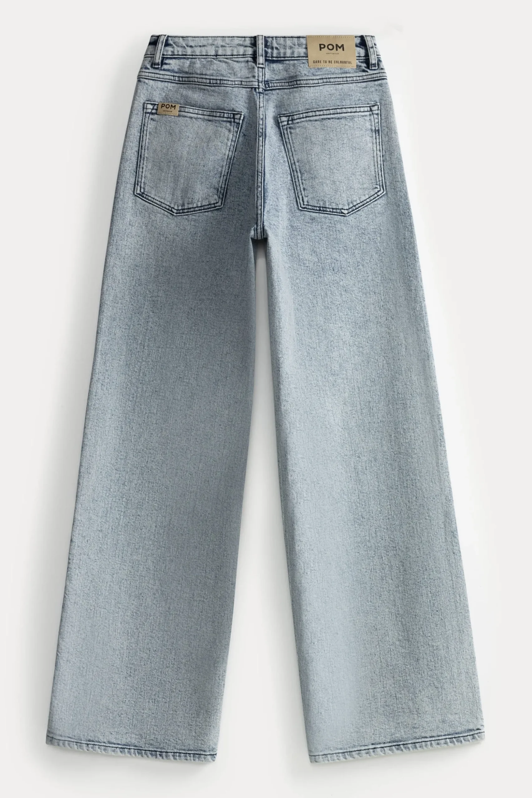 De broek heeft een wijde pijp. De broek heeft een binnenbeenlengte van 82 cm. Het model is 175 cm en draagt maat 36.