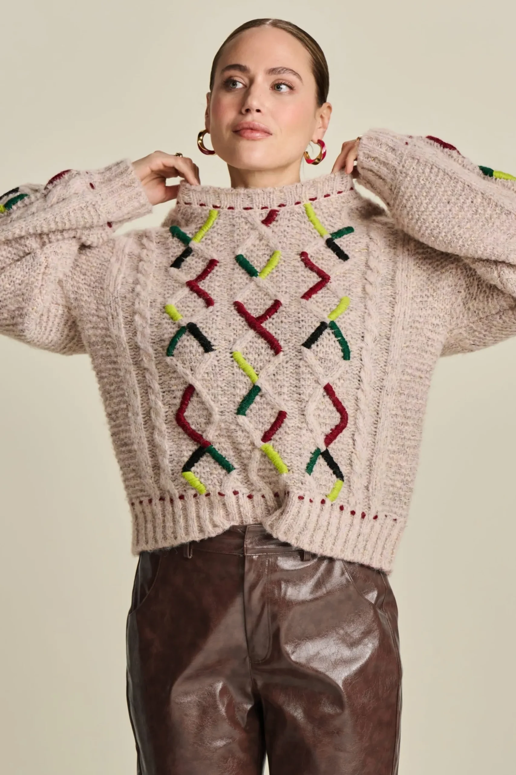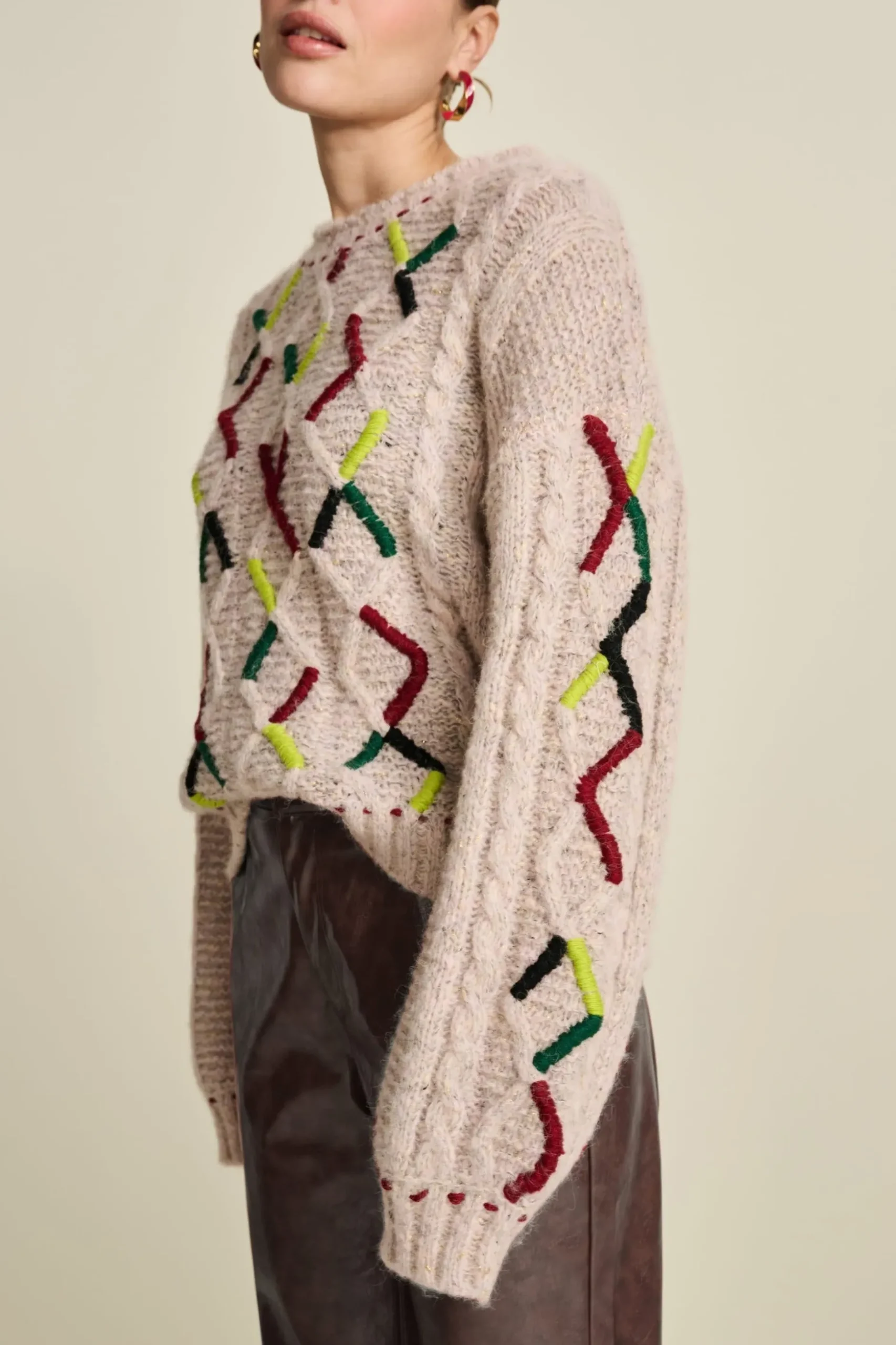 Pasvorm: De trui heeft een wijde fit en lange mouwen. Het model op de foto is 170 cm lang en draagt maat 36.