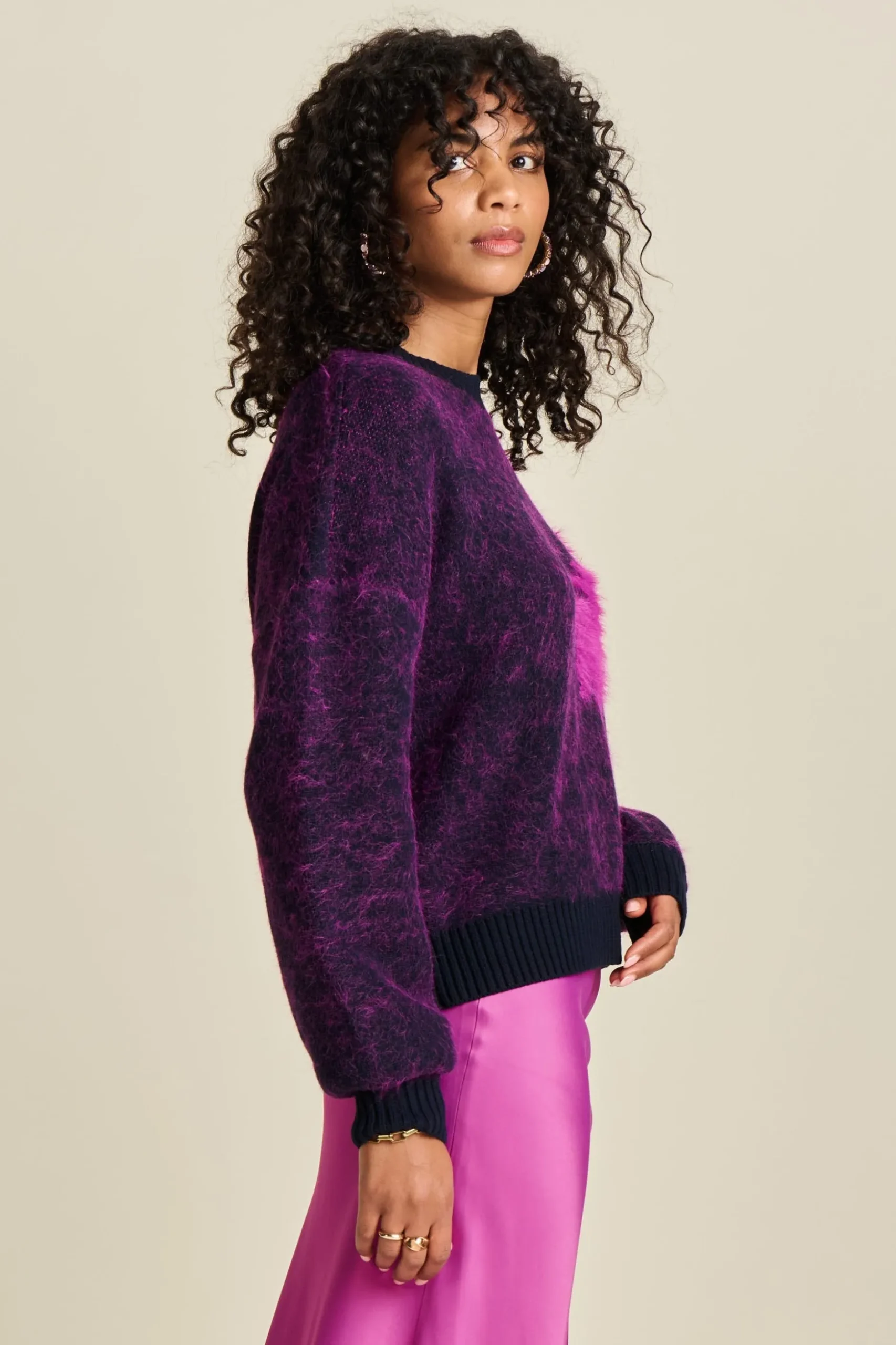 Pasvorm: De trui valt recht en reikt tot op de heup. Het model op de foto is 176 cm lang en draagt maat 36.