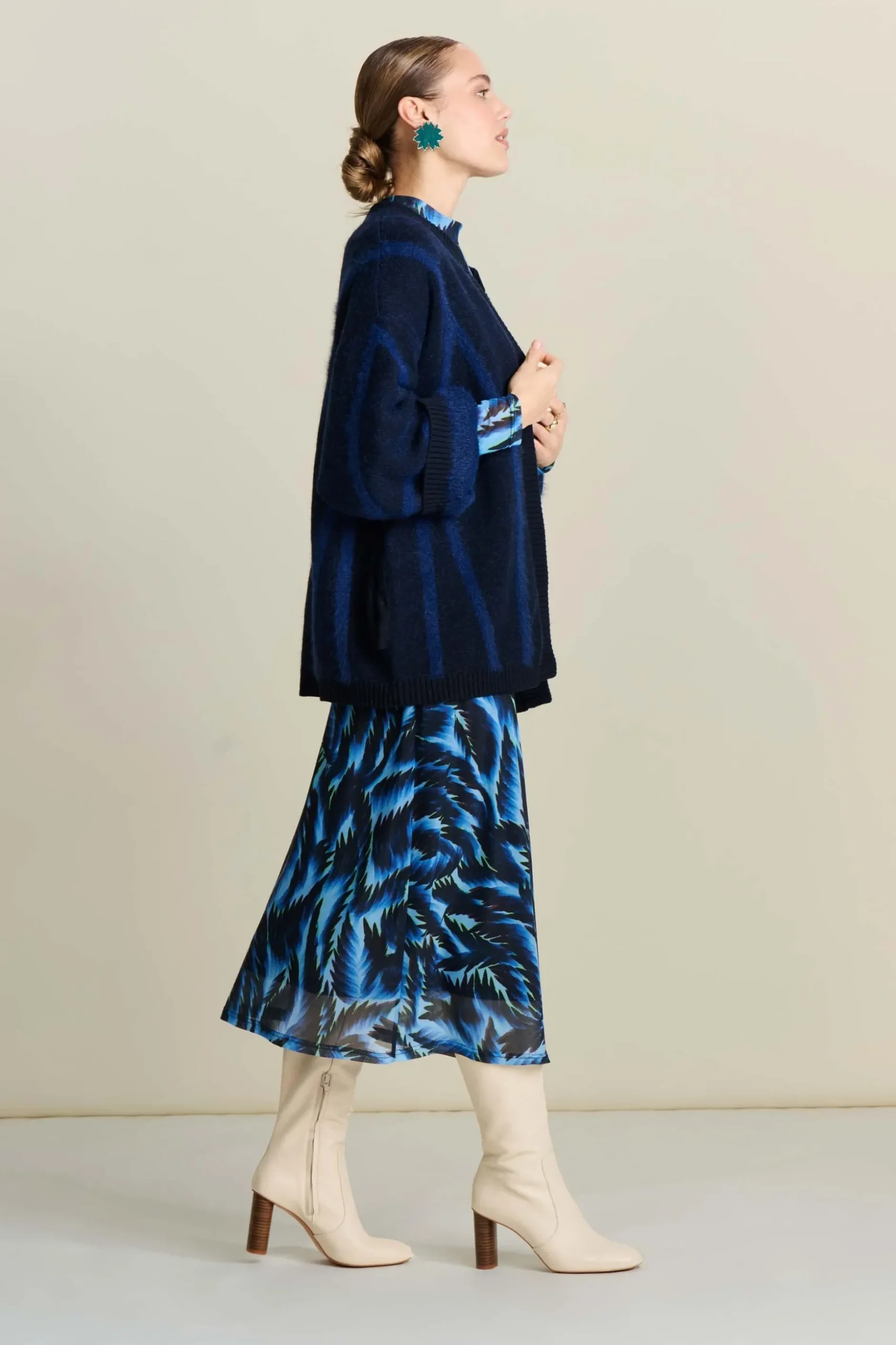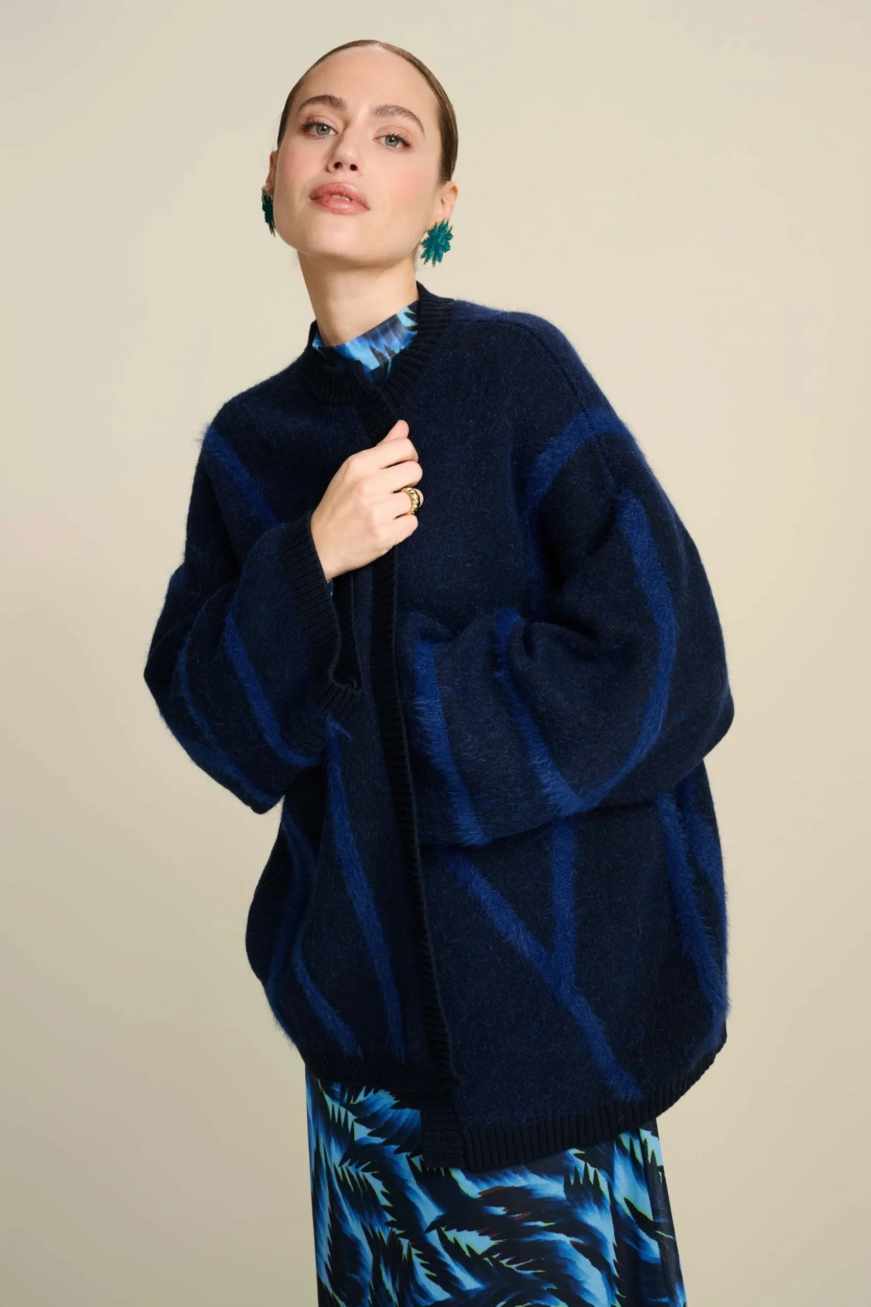 • Donkerblauwe cardigan